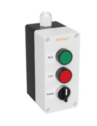Пульт управления (ПУ) – предназначен для коммутации электрических цепей управления переменного тока напряжением до 230 В частоты 50 и 60 Гц и постоянного тока напряжением до 50 В, для дистанционной подачи сигналов управления. Применяется для дистанционного управления различными механизмами и электрическими машинами.