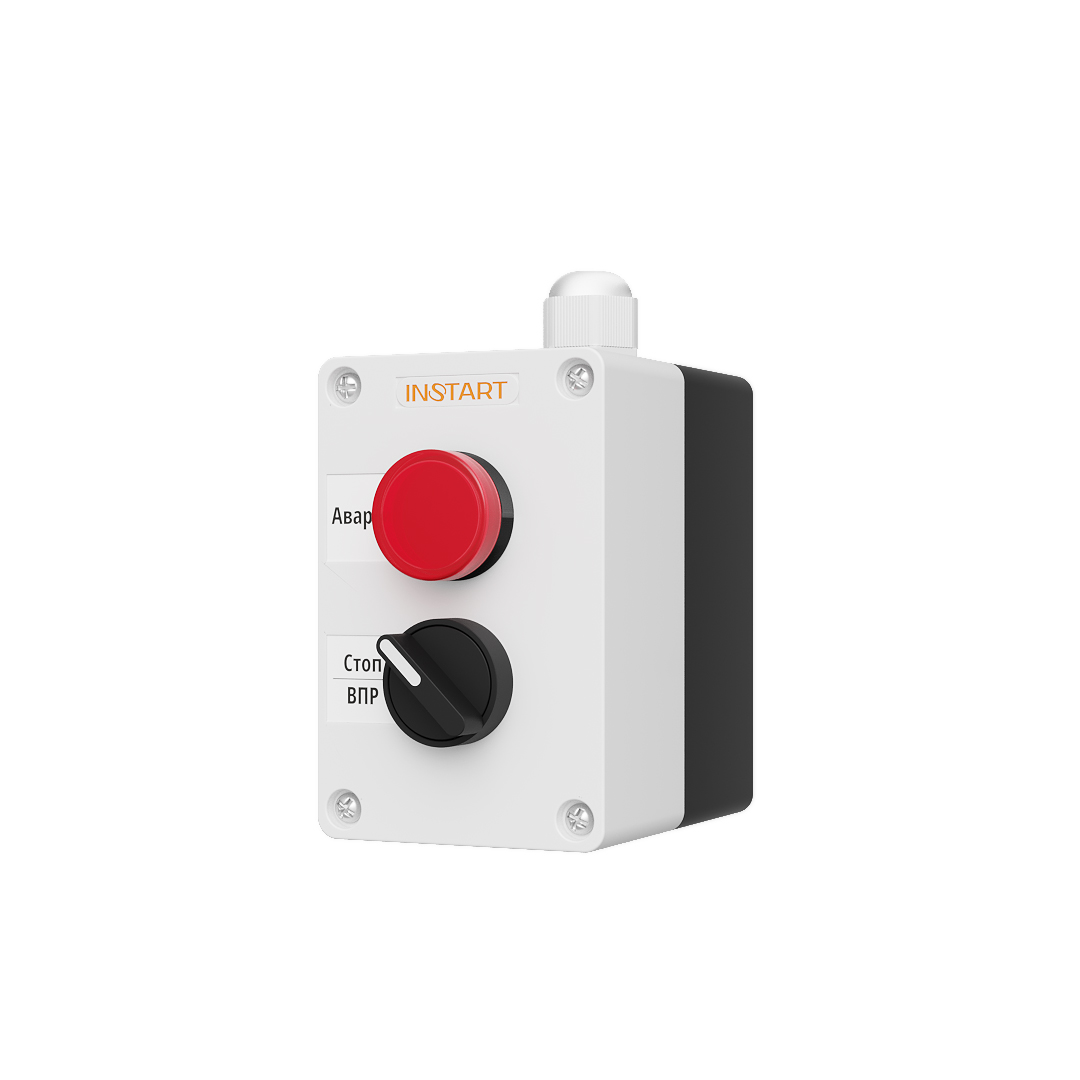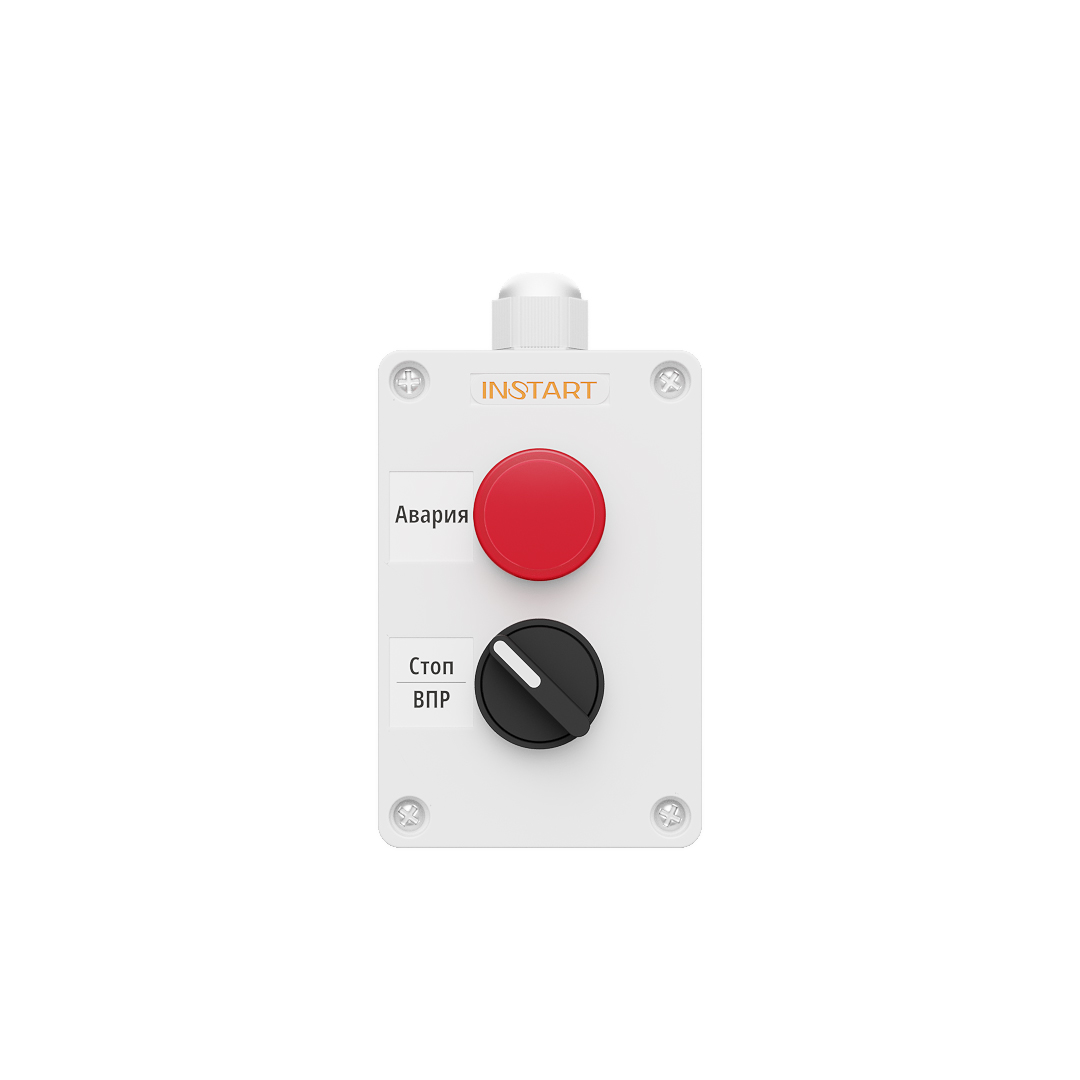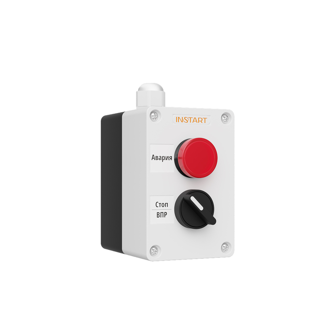 ПУ-2-410 – пульт управления, оснащённый 2-х позиционным переключателем и индикацией в виде красной лампы 24 В. Предназначен для управления пуском, остановом электродвигателя и индикации аварии преобразователя частоты.