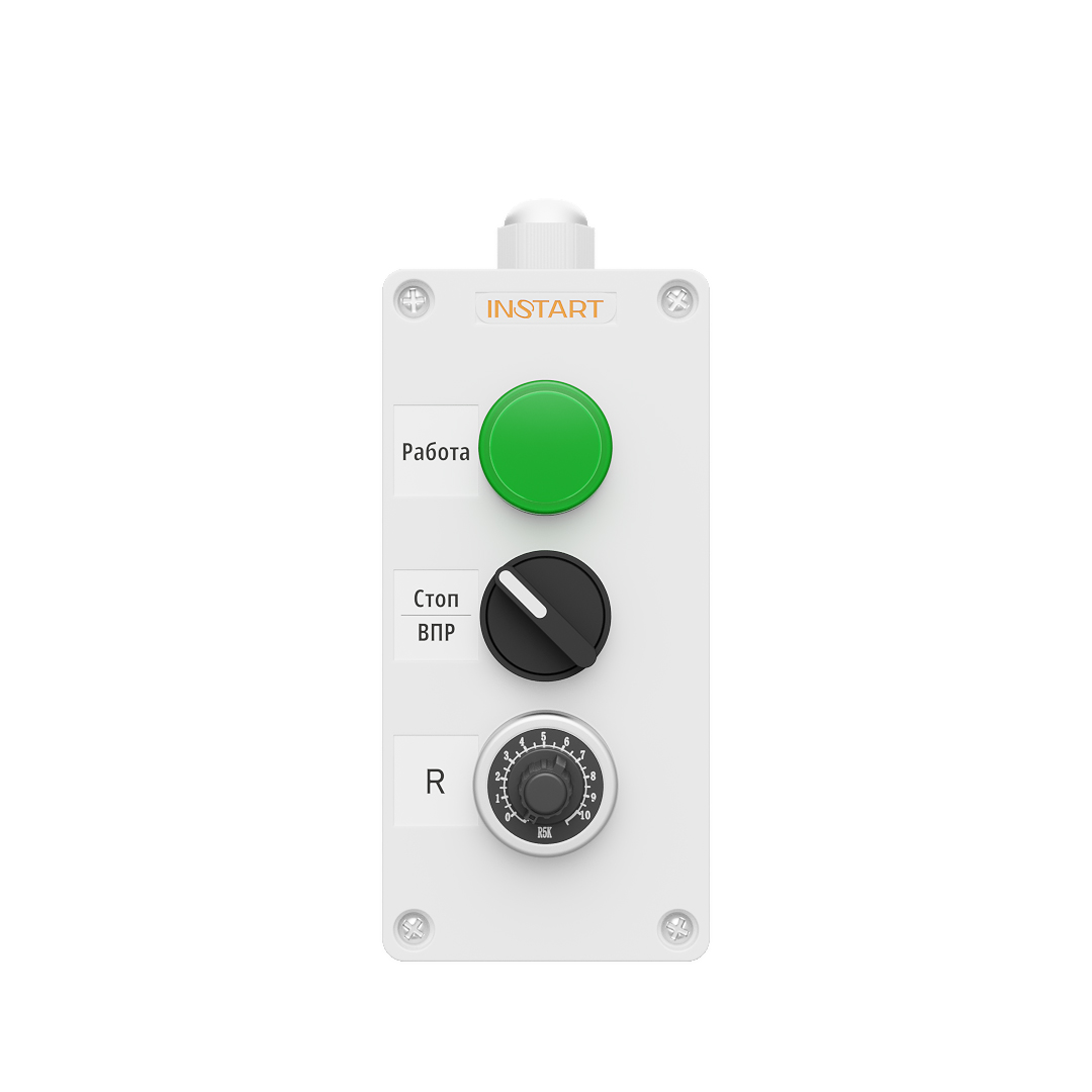ПУ-3-211– пульт управления, оснащённый индикацией, в виде зелёной лампы 220В, 2-х позиционным переключателем, потенциометром. Предназначен для управления пуском, остановом, изменения опорного сигнала частоты, индикации работы преобразователя частоты.