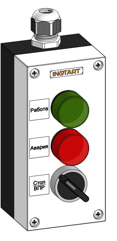 ПУ-3-810 – пульт управления, оснащённый индикацией в виде красной и зеленой лампы 230 В и 2-х позиционным переключателем. Предназначен для управления пуском, остановом или сменой направления вращения и индикации работы и аварии преобразователя частоты.