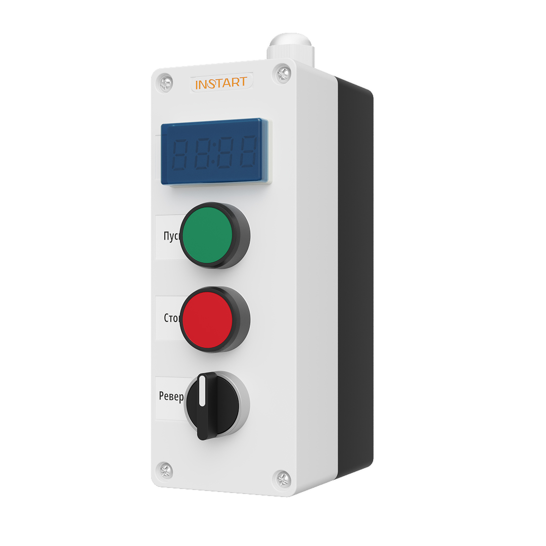 ПУ-4-640 – пульт управления, оснащённый измерителем аналоговых сигналов ИТП-11, кнопками пуск/стоп, 2-х позиционным переключателем. Предназначен для управления пуском остановом, направлением вращения электродвигателя и отображения требуемых показателей.